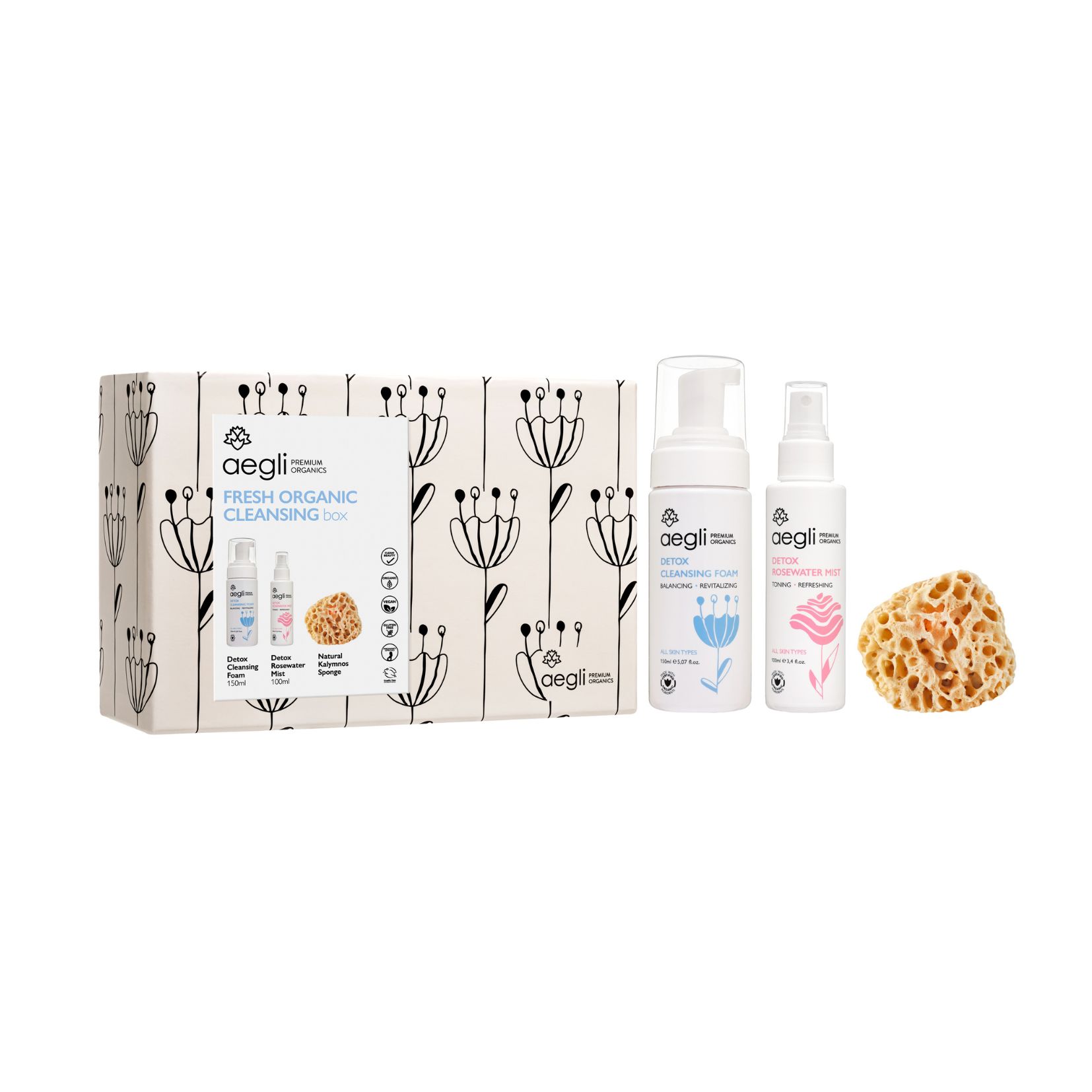 Limited edition ΣΕΤ δώρου προσώπου με αφρό καθαρισμού, λοσιόν τριαντάφυλλου και φυσικό σφουγγάρι καθαρισμού & απολέπισης.